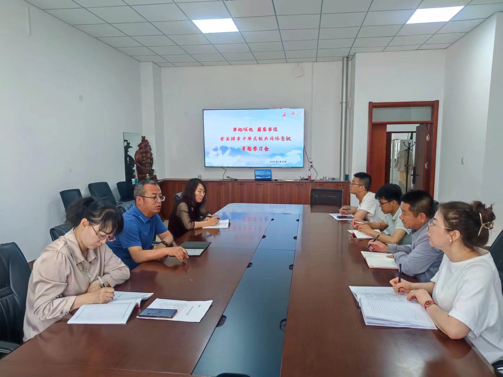 会议学习了《中华人民共和国民族区域自治法》 、《内蒙古自治区促进民族团结进步条例》、《内蒙古自治区实施〈中华人民共和国国家通用语言文字法〉办法》 、《铸牢中华民族共同体意识学习宣传手册》 、《新时代党的民族工作应知应会知识手册》。此次学习进一步深化了与会成员对铸牢中华民族共同体意识的理解与认识,与会人员纷纷表示,要在今后的工作生活中发挥党员的先锋模范作用,牢记初心使命,坚定理想信念,用实际行动践行和传播铸牢中华民族共同体意识。