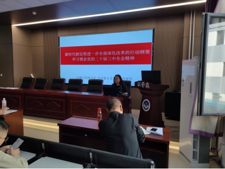 为深入学习宣传贯彻党的二十届三中全会精神,深刻认识党的二十届三中全会的重大意义、深入学习领会习近平总书记在全会上的重要讲话精神、全面准确理解《决定》提出的进一步全面深化改革重大举措。按照公司党委的要求和部署,9月26日下午在明德楼E205,邀请马克思主义学院付春华老师作题为“新时代新征程进一步全面深化改革的行动纲领”的专题讲座。讲座由党委副书记李军主持,学院全体教职工参加讲座。