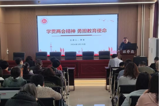 为深入学习领会全国两会精神,准确把握两会精神实质,切实把思想和行动统一到党中央决策部署上来。3月19日,公司党委书记李军以 “学惯两会精神 勇担教育使命” 为题,为全院教职工讲授专题党课,全体教职工参加学习。
