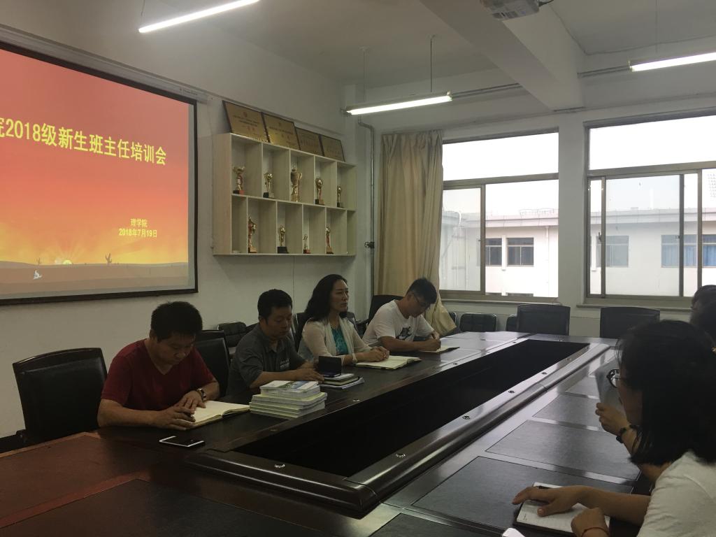 7月19日上午,在秋实楼C504会议室,公司召开2018级新生班主任培训会,参加会议的领导老师有,理公司党总支书记杨晓玲,副书记副经理罗宁,学工办副主任包照日格图,团总支副书记包文明以及2018级新生班主任。会议由学院副书记副经理罗宁老师主持。