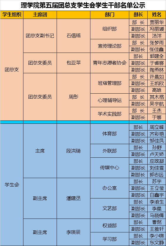 公司2020-2021年团总支员工会员工干部名单公示