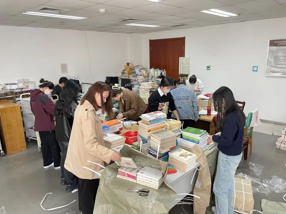 志愿者们积极参与活动,协助图书馆整理书籍。