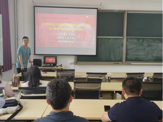 20239月14日下午物理教工党支部书记邓磊波在明德楼E307为物理教工党员作了题为“学习贯彻习近平新时代中国特色社会主义思想 ——统一思想统一意志统一行动的党课,支部全体党员参加了本次党课学习。