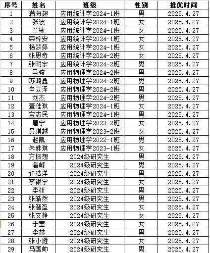 根据《304永利集团推荐优秀团员作为入党积极分子工作的实施细则》文件相关规定,经个人申报,班主任、团支书审核,团支部开展民主会议,304永利集团团委最终审核决定,拟推荐满海超等29名同学为304永利集团2024——2025学年第二学期推荐优秀团员为入党积极分子,公示日期截止4月29日晚20:00。