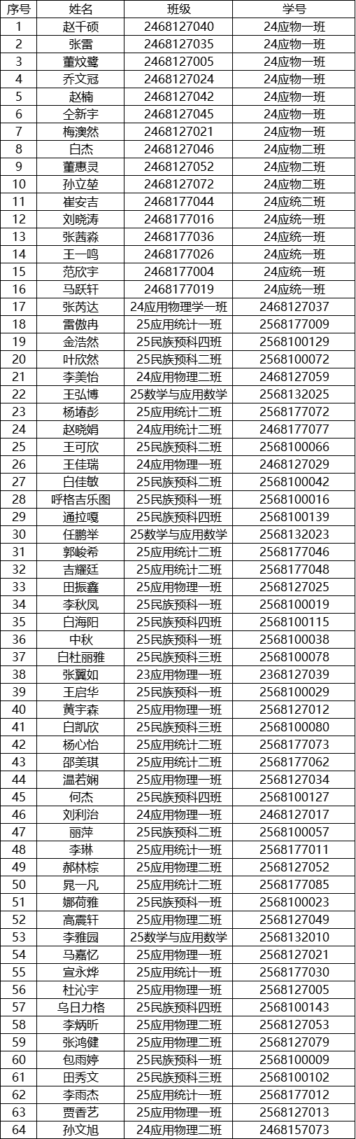 根据《中国共产主义青年团章程》和《中国共产主义青年团发展团员准则》相关文件要求,确保发展团员的程序规范。经员工个人自愿申请,班级团支部培养,拟确定赵千硕等64人为入团发展对象,现将名单公示如下: