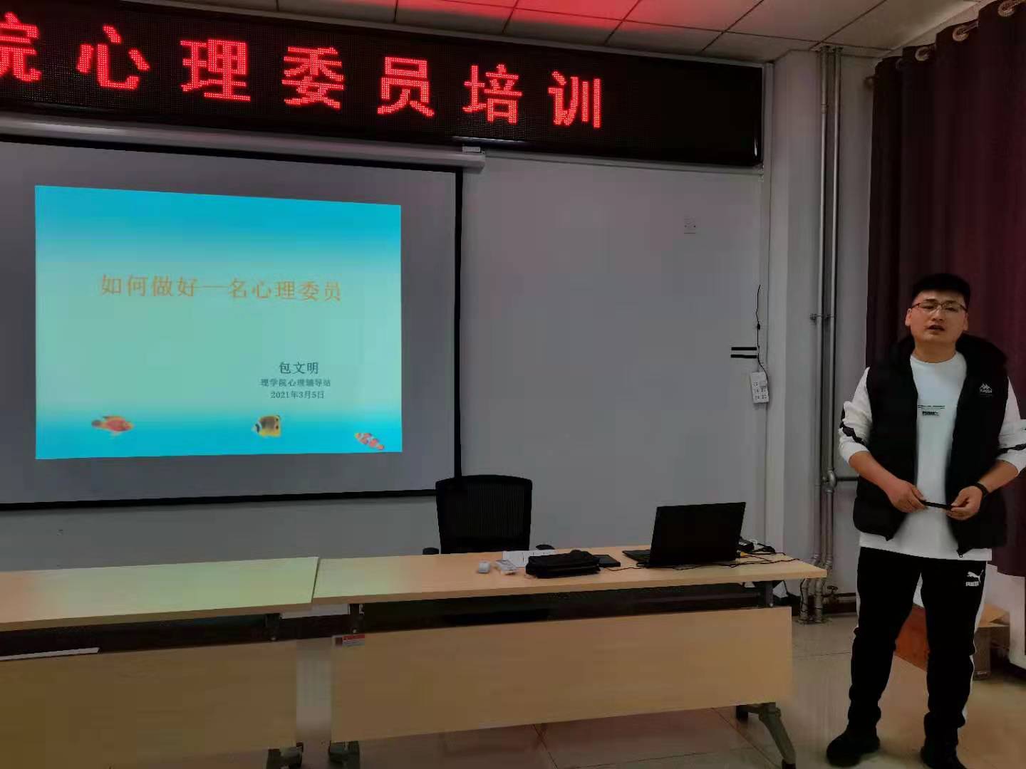 为提升公司心理委员的专业化水平,3月5日中午,304永利集团“阳光心语”心理辅导站在明德楼E205会议室进行了本学期第一次心理委员培训,参加此次培训的有2017级、2018级、2019级、2020级以及少数民族预科等各班心理委员,培训主题为如何做好一名心理委员。