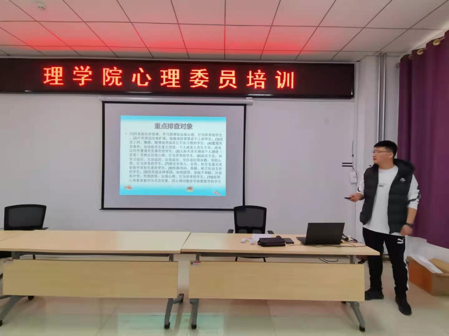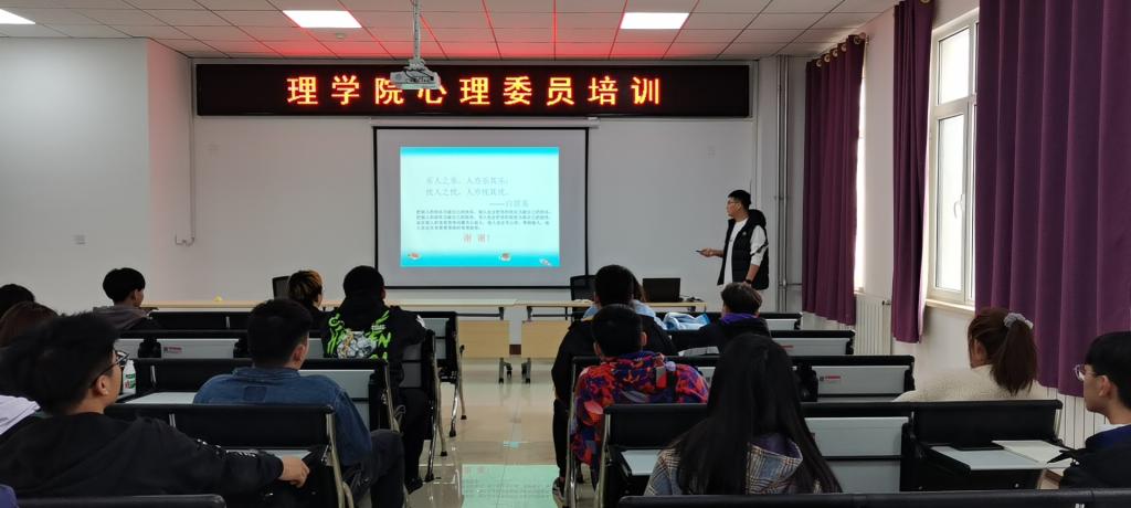 紧接着,包文明老师通过三个案例引出了心理委员的角色定位:知心伙伴、心理观察员、活动组织者、信息沟通的桥梁。作为知心朋友,要关注有“困难”的同学,在能力范围内进行初期辅导。心理委员是一个润滑剂,是问题的缓冲,要把握好理解、尊重、支持原则。作为心理观察员,在初期心理危机预警中发挥着重大作用。心理委员的最大优势就是与同学联系紧密,拥有许多正式的与非正式的沟通渠道。作为心理活动的组织者,可以组织班级同学参与学校心理教育中心举办的各项活动,根据本班的情况有选择性的开展一些特色活动、传播心理健康知识,提升同学们的心理健康意识。作为信息传递员,不仅要为同学介绍学校心理援助资源,还要及时将同学中可能导致危机事件的信息及时反馈给班主任辅导员老师或学院心理辅导站。