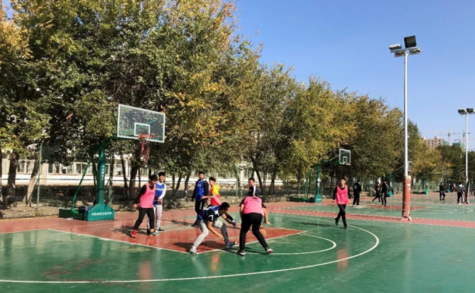 篮球友谊赛在西校区户外篮球场举行,两只队伍赛前互相握手问候,增进彼此感情,突显了友谊第一比赛第二的精神。