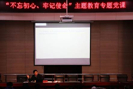 赵增武教授从开展主题教育的总要求、根本任务和具体目标入手,结合个人近期在浦东干部学院的学习经历,从“共产党员的信仰、周恩来总理的《我的修养要则》、‘中国之制’看‘中国之治’——党的十九届四中全会决定”三个部分进行分享与阐释——认真开展好“不忘初心、牢记使命”主题教育的重要性。
