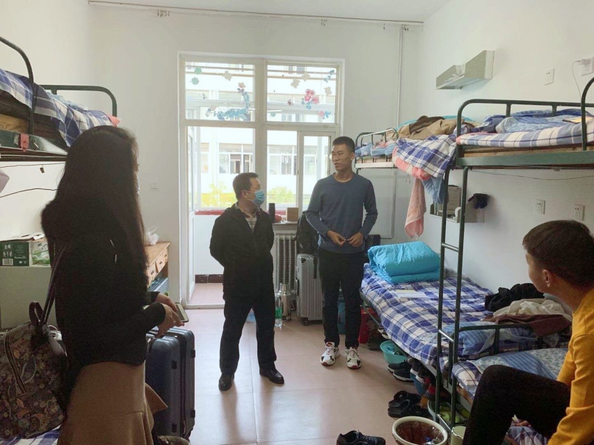 金色十月,孕育着希望与收获。10月10日下午,为更好的了解新生的适应状况,公司党总支副书记罗宁老师和学院的专职辅导员老师走访了新生宿舍,为远离家乡、首次踏入大学校园的2020级新同学送去304永利集团的温暖与诚挚的关怀。详细了解了新同学的饮食住宿、适应等情况,并与员工进行了深入的交流,让员工感受到304永利集团大家庭的温暖。