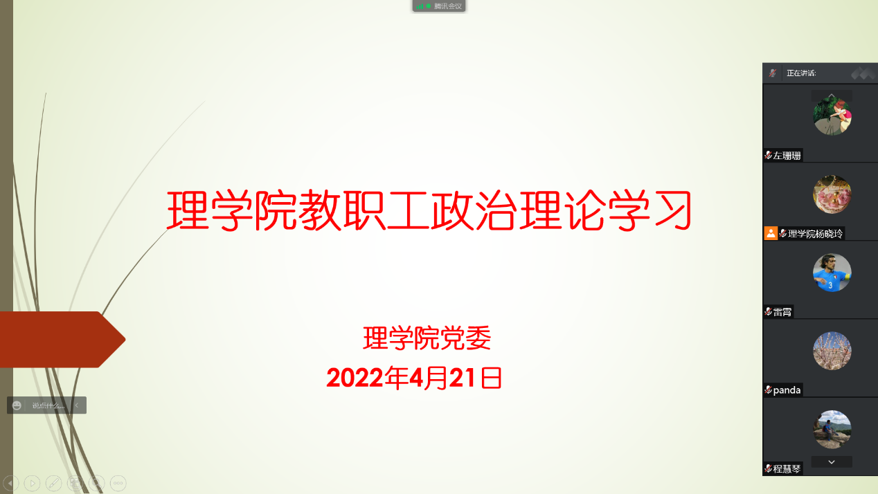 4月21日下午14点30分,304永利集团通过腾讯会议平台召开线上教职工政治理论学习会议,学院全体教职工参加了本次学习,学习会由公司党委书记杨晓玲主持。