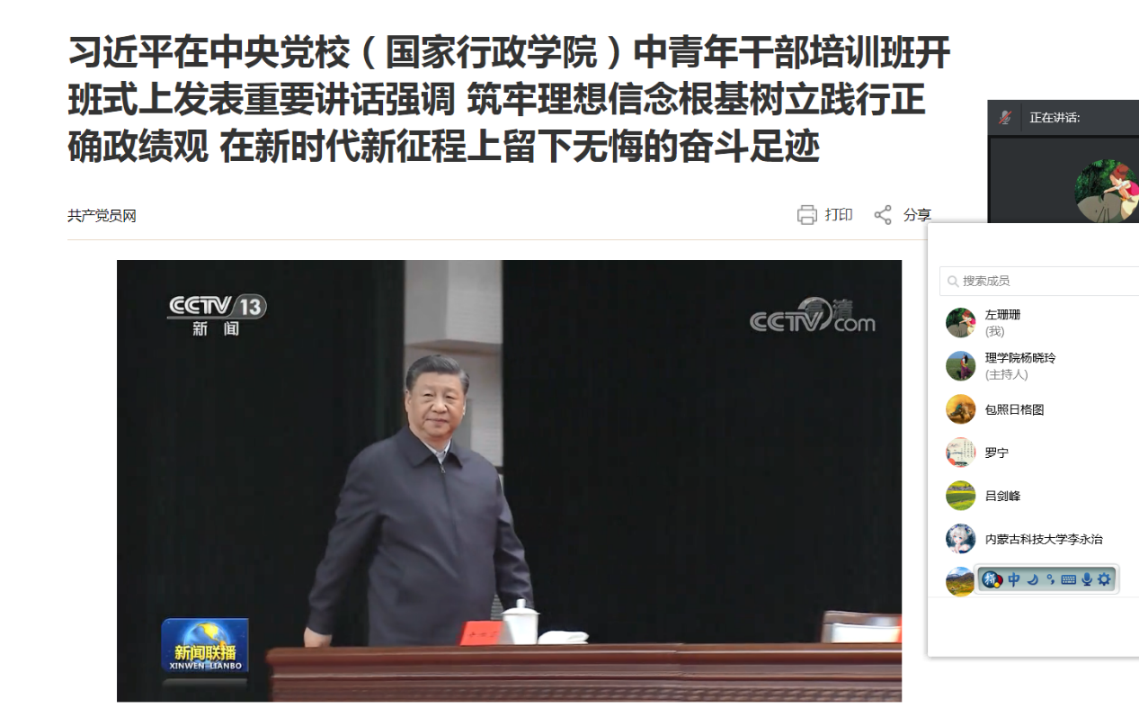 3月23日晚上八点,公司党委理论学习中心组开展线上政治理论学习,公司党委理论学习中心组成员及各支部书记参加学习,党委书记杨晓玲主持学习会。