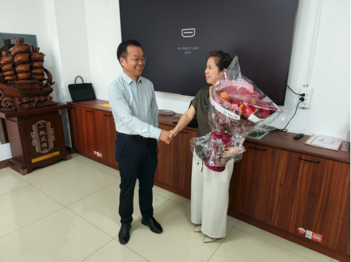 9月9日,李卫平副董事长莅临304永利集团慰问工作在一线的教师代表。李卫平问候了公司教师代表刘佳老师,询问了刘佳老师最近的工作情况和身体状况,赞扬了刘老师多年来对学院和学校做出的贡献,并代表学校向刘老师和304永利集团所有教师致以节日的祝福和深切的问候。刘老师代表304永利集团全体教师向李董事长表示感谢。