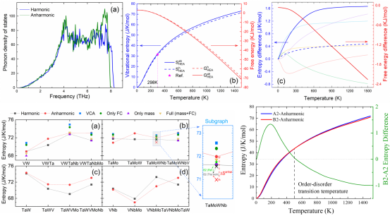 高熵材料是对传统材料设计思想的彻底颠覆,它充分利用了高熵系统的极端复杂性以获得新奇的三维类晶体结构和出色的稳定性。这种独特的类晶体结构使高熵合金有望成为关系到国计民生关键尖端工程技术的典型材料。然而,这也使得高熵合金的组分演化和热力学性质的研究变得尤为复杂。尤其是,非简谐效应对高熵合金热力学性质的影响尚不明了,且其在短程有序化相变过程中的微观机制仍未被深入揭示。
