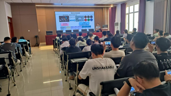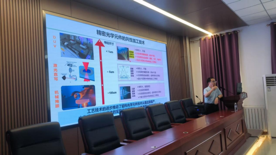 董建文教授从光学超表面的关键技术、光学超表面设计原理、光学超表面工艺制备、光学超表面的真三维AR显示系统展示、高精度纳米压印等方面进行了详细的讲解。在场师生认真聆听报告,并与董建文教授进行了热烈的学术交流与探讨,此次讲座为公司师生提供了一次高水平高质量的学术交流。