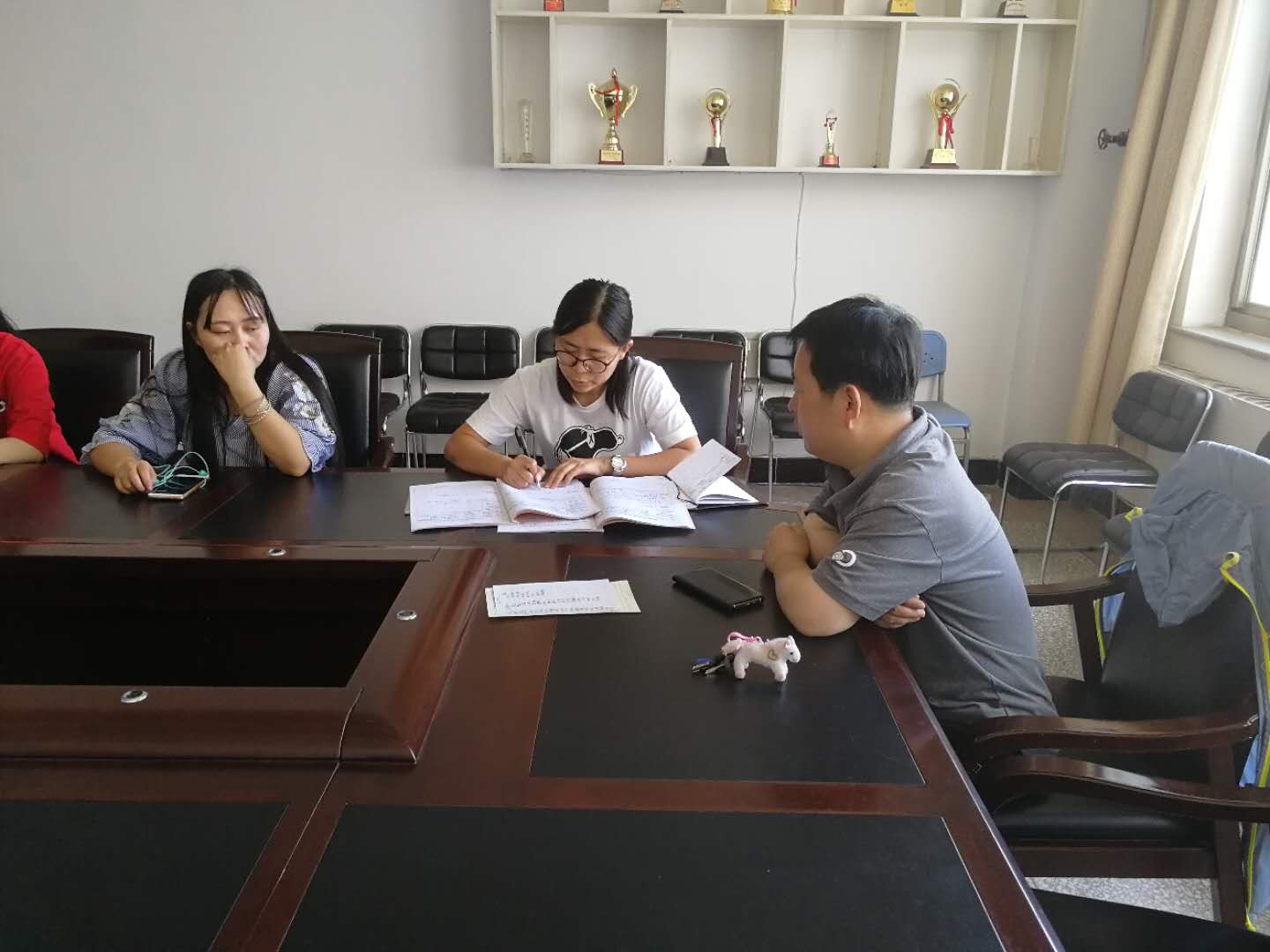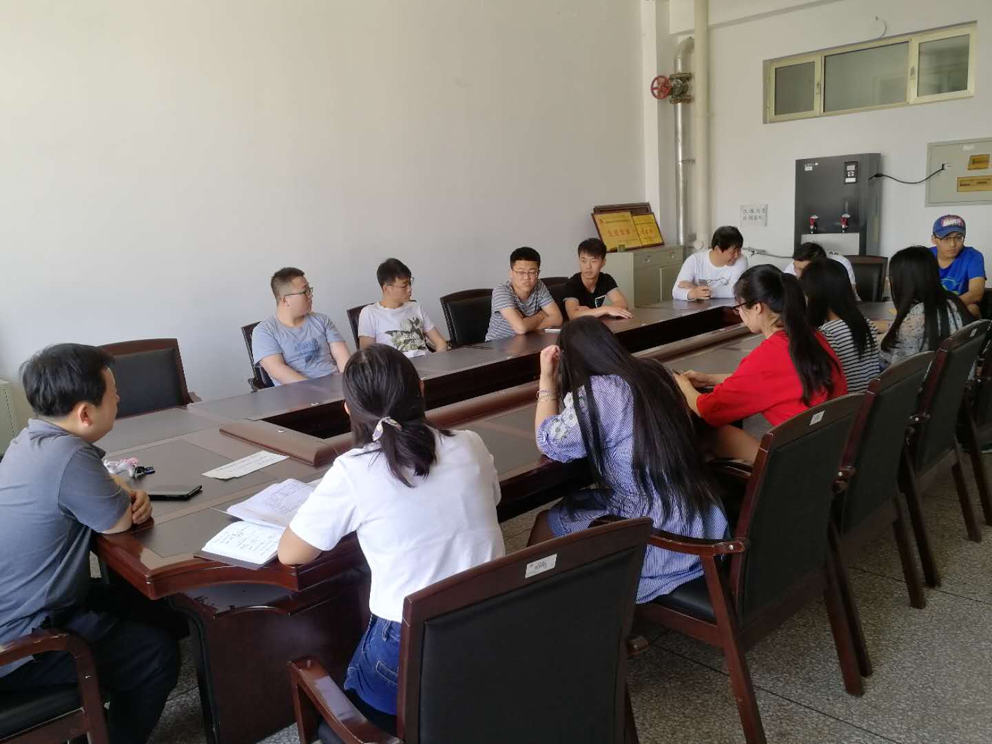 5月18日上午,在秋实楼C504召开2018届毕业生就业工作座谈会,会议由学院副书记,副经理罗宁主持,参加会议的还有学院办公室杨倩老师,以及2018届数学和物理班未就业全体毕业班员工。