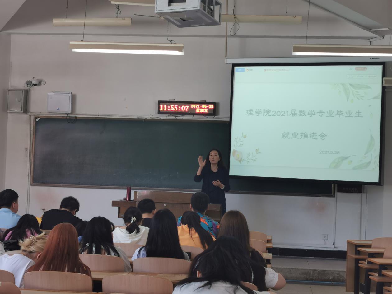 为推进就业工作,杨晓玲老师5月28日上午11:00在A102对2021届数学专业毕业生召开了就业推进会。